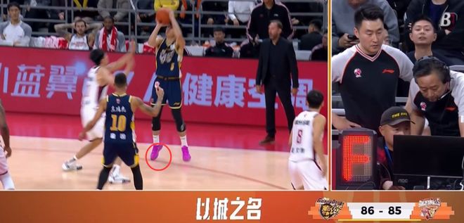先来说说第一个问题,其实陈家政的三分球真的很难界定到底有没有踩线(个人倾向于没有),虽然在陈家政本人看来他肯定是没有踩线的,但有一说一,像这种照片拿出来佐证有没有踩线其实用处不大,一来这只是一张静态图片,没有拍到陈家政起跳瞬间鞋尖位移的情况;