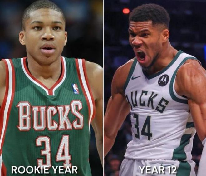 2013 年,来自希腊的瘦弱少年扬尼斯・阿德托昆博在首轮第 15 顺位被密尔沃基雄鹿队选中。刚进入联盟时,他虽然拥有出色的身体天赋,但技术粗糙,篮球意识也有待提高,被认为还十分稚嫩,需要长时间的培养和成长。