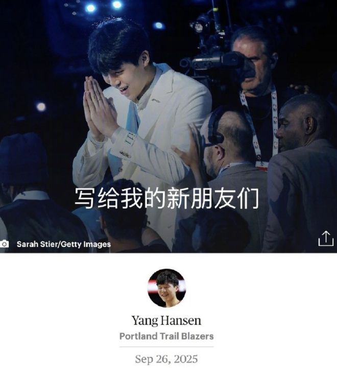 杨瀚森新赛季一定会惊艳所有人,成为开拓者这个队伍的建队基石,他写下了一篇亲笔信送给了大量球迷,也让美国球迷彻底了解了他。而开拓者官方同时也发布了对于杨瀚森的激励,他们晒出了杨瀚森在球队的最新训练照,并且表示:“小杨未来能够成为波特兰和中国球迷的骄傲。”