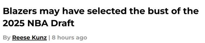 北京时间1月6日,开拓者记者Reese Kunz撰文谈到了杨瀚森。他的标题是“开拓者可能选到了2025年选秀大会的最大水货”,以下是他的文章相关内容——“这绝对是我见过最离谱的选秀