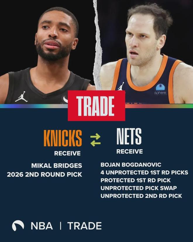 2025年休赛期,掘金把小波特和2032年无保护首轮签送给篮网,换来卡梅伦-约翰逊。如今篮网又想用小波特换首轮签,这操作难免让人想起布里奇斯。当年篮网用杜兰特换来大桥、约翰逊和4个首轮签,又把大桥送到尼克斯,换来5个首轮签。