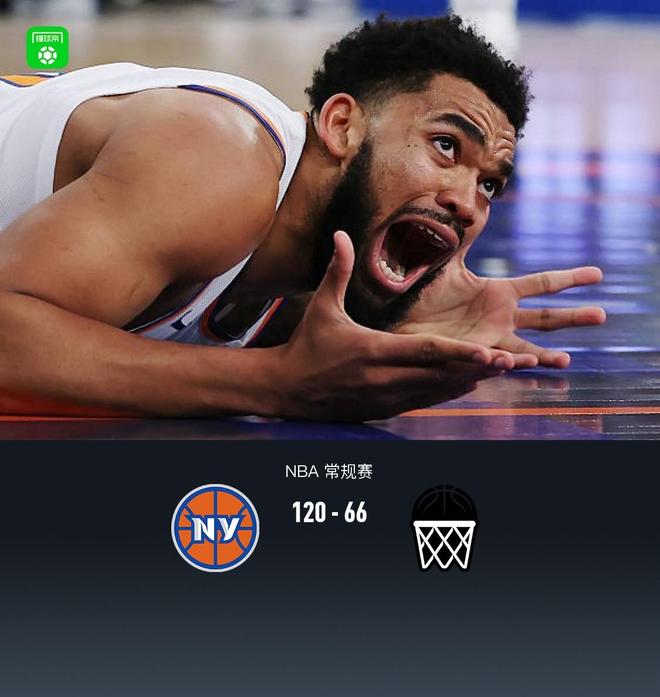 第四节尼克斯沙梅特拿下9分,篮网泰雷斯-马丁拿下3分,最终尼克斯120-66战胜篮网