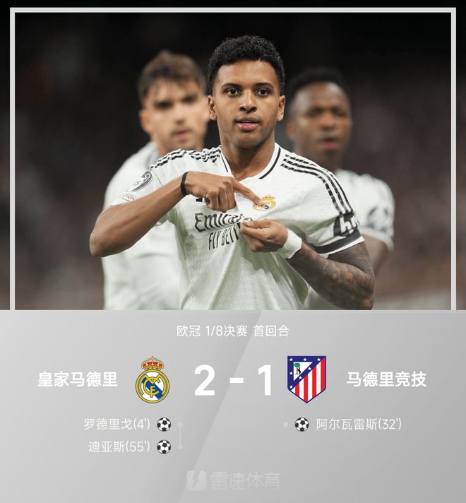 比赛第55分钟,迪亚斯在禁区内兜射远角,最终帮助皇马在首回合主场2-1领先马竞。