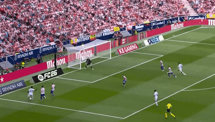 即便是取得了比分上的领先,马竞依旧保持强硬的进攻态势,前场的疯狂逼抢令皇马很难组织起有效的攻势。第25分钟,居莱尔直塞,姆巴佩插上禁区劲射破门,1:1!皇马利用一次仅有的机会,扳平比分。第36分钟,比分再次被改写!马竞中场解围失误,维尼修斯晃过两名防守球员,直塞禁区中路,居莱尔凌空抽射破门,1:2!皇马反超比分。