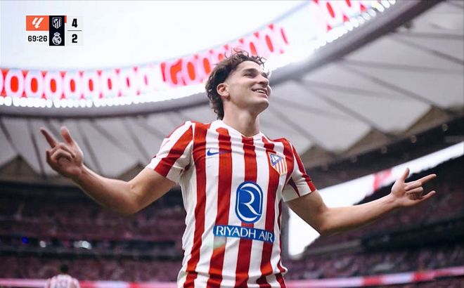 仅仅一分钟后,阿尔瓦雷斯利用任意球的机会,再次打出精彩的弧线球,直挂球门死角,4:2!马竞扩大比分。