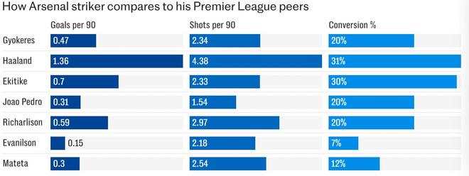然而,围绕这位瑞典前锋的情绪不再那么狂热。事实上,哲凯赖什正迅速成为酋长球场和喧嚣的社交媒体世界中阿森纳球迷辩论的主要焦点。