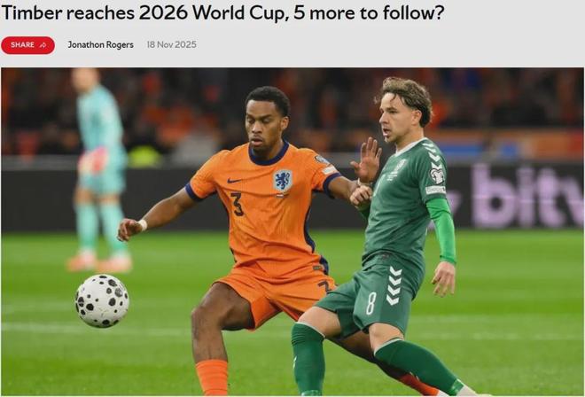 荷兰4-0战胜立陶宛,成功挺进世界杯决赛圈!本场比赛廷贝尔作为首发右后卫 登场,并出战64分钟。