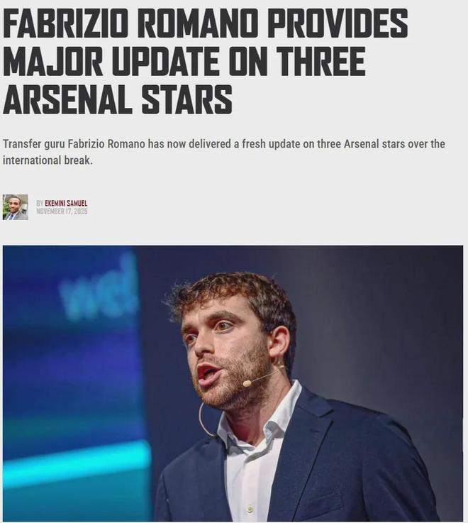 罗马诺在最近的YouTube频道中谈到了萨卡、廷贝尔和赖斯的续约问题。