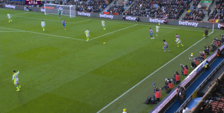 不过,人还在,精力不可能和上赛季类似,所以哪怕在主场,水晶宫依然保守应对,直至第10分钟,采用连续争高球的方式打进了禁区: