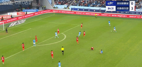 第5轮,深圳新鹏城1-3河南,杨一鸣禁区外精彩世界波直挂死角